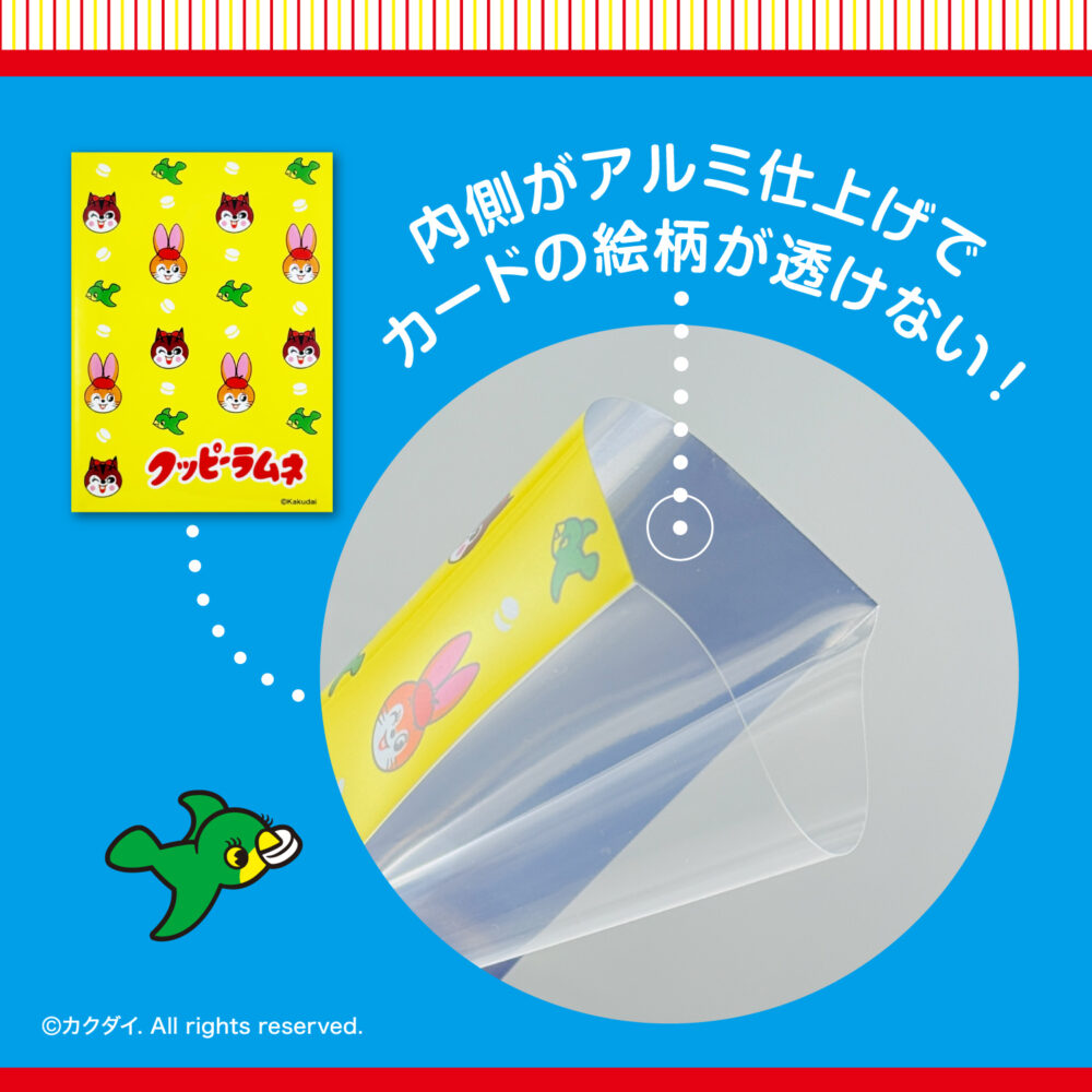 誰もが知っている、あの「クッピーラムネ」が、カードスリーブになって登場!他にはないレトロかわいいデザインで、普段使いはもちろん、コレクションにも最適です。