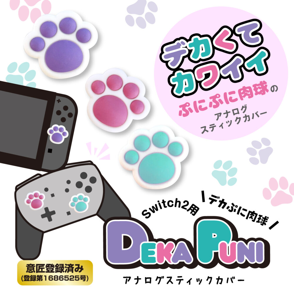 クセになっちゃうぷにぷに触感がたまらない!カラフルでかわいい肉球型アナログスティックカバーです。意匠登録済み(登録第1686525号)、弊社だけの完全オリジナル商品となっております。