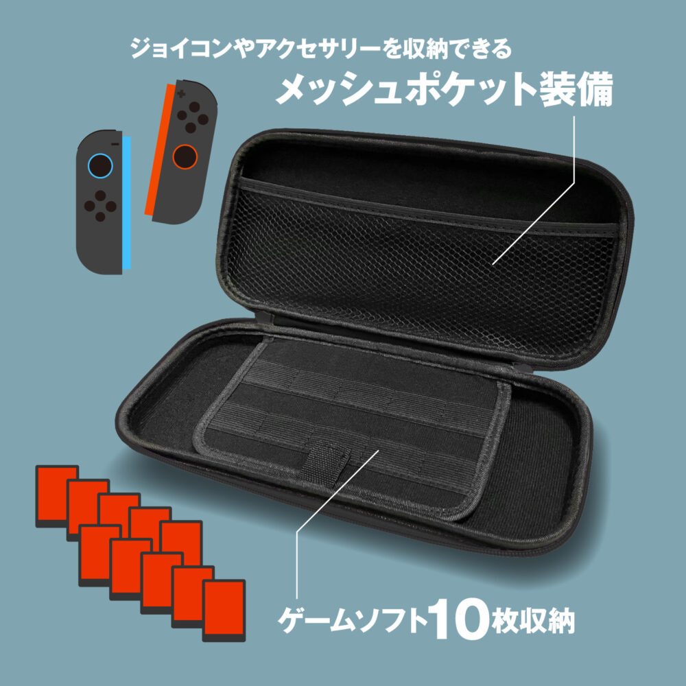 ゲーム機本体の形にピッタリ沿うよう可能な限り薄型・コンパクトな設計にこだわりました!バッグやリュックに入れやすいことはもちろん、ポーチの中でゲーム機が動いてしまうことを防げるスリムタイプ。