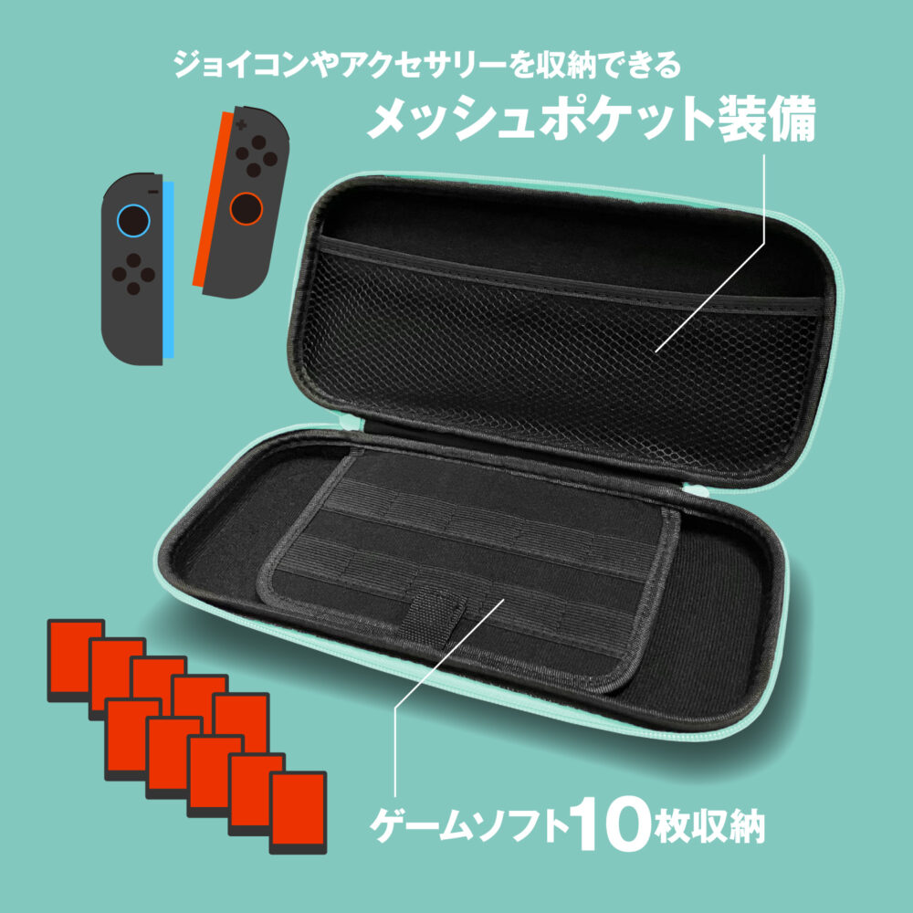 軽くて丈夫なEVA素材は、大切なゲーム機をキズや汚れ、衝撃からしっかりガードしてくれます。内側は柔らかい裏起毛仕様となっており、ゲーム機本体を固定するバンドも付いているため、持ち運びにも安心です。 ご家族やお友達と色違いで使ってもかわいい!
