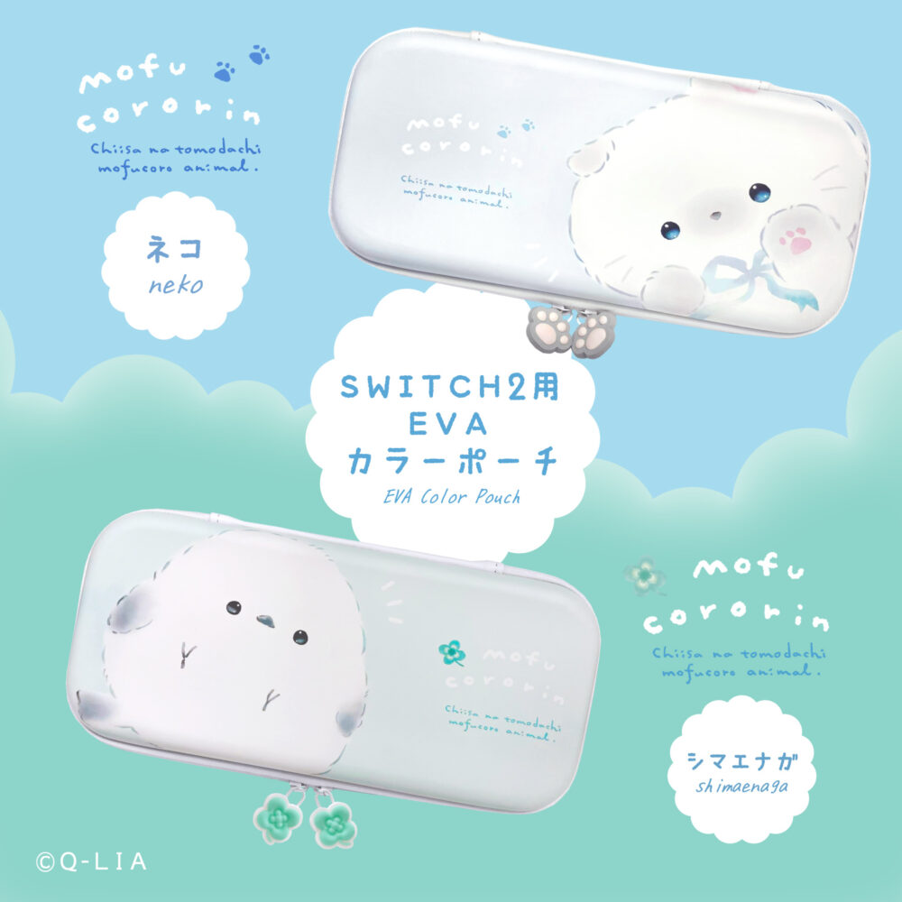 Switch2本体を収納できるEVAカラーポーチです。幅広い世代から人気のファンシーブランド「Q-LiA」とのコラボアイテム!SNSでも話題の癒し系もふもふキャラクター「もふころりん」から、「ネコ」と「シマエナガ」の2バリエーションで登場です。
